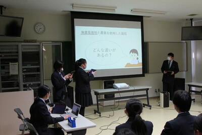 1月22日(木)の5、6校時に、3年次生が「総合的な探究の時間」の授業で1年間探究活動を行ってきた成果をプレゼンする「学習成果発表会」が行われました。